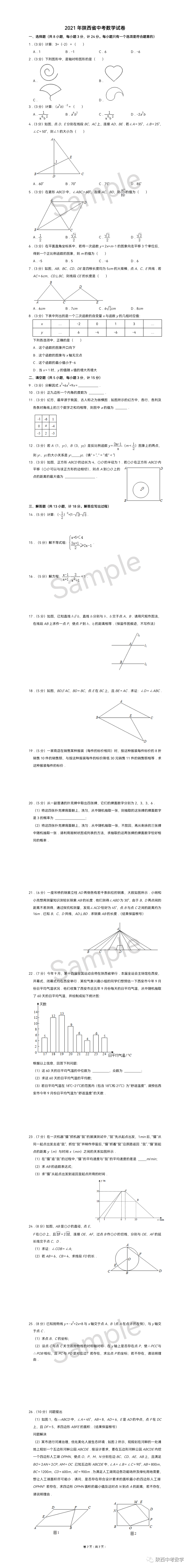 2021年陕西中考数学试题(卷)
