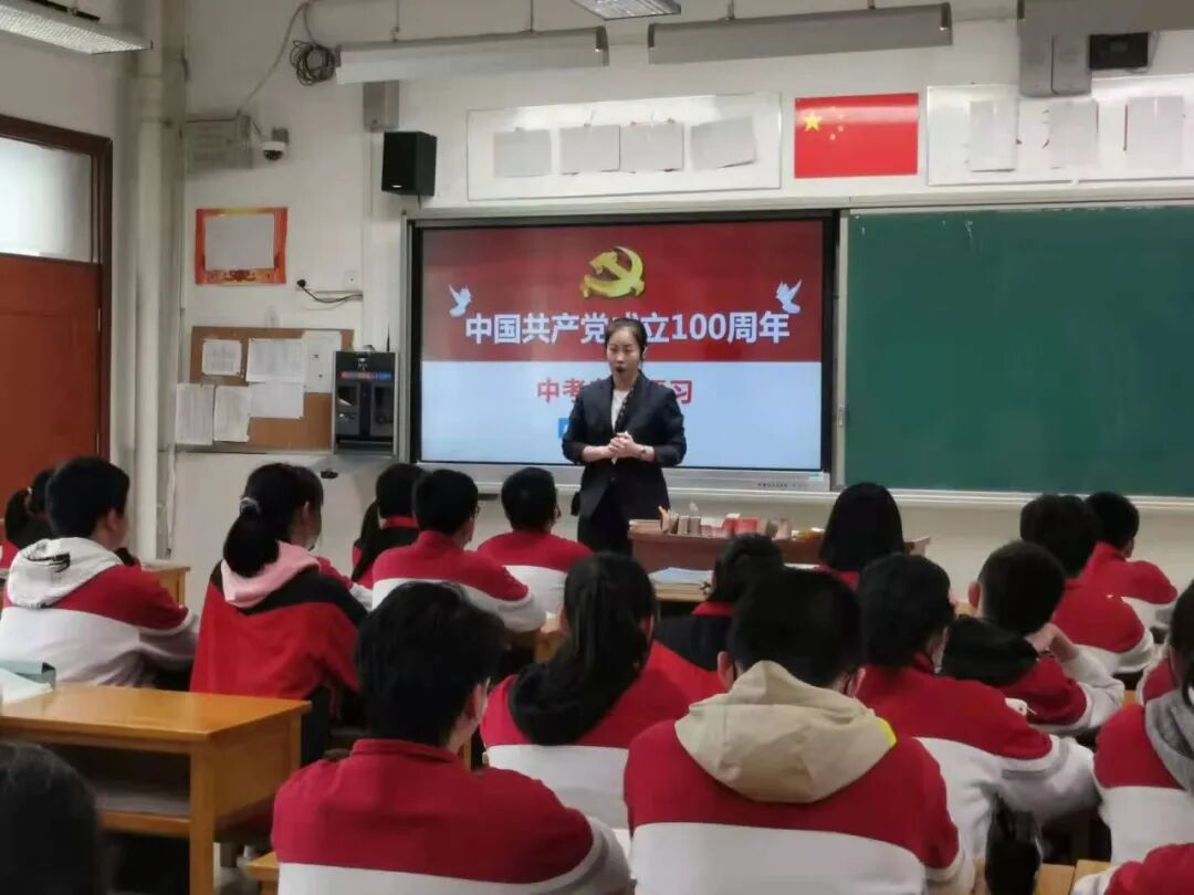政治组张瑶老师从中国共产党的性质、地位、初心和使命等角度带领学生复习了中国共产党成立100周年的相关知识点。特别是最后的情感升华,充分激发学生的爱党爱国情怀,引导学生成为全面发展的社会主义建设者和接班人。