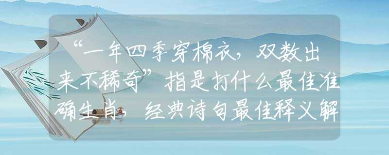 - 兔(毛也多,但排第4位,偶数,不过兔子不是典型“棉衣”厚重形象,且“双数出来”不如羊贴切,因为羊群比兔群更直观“不稀奇”)