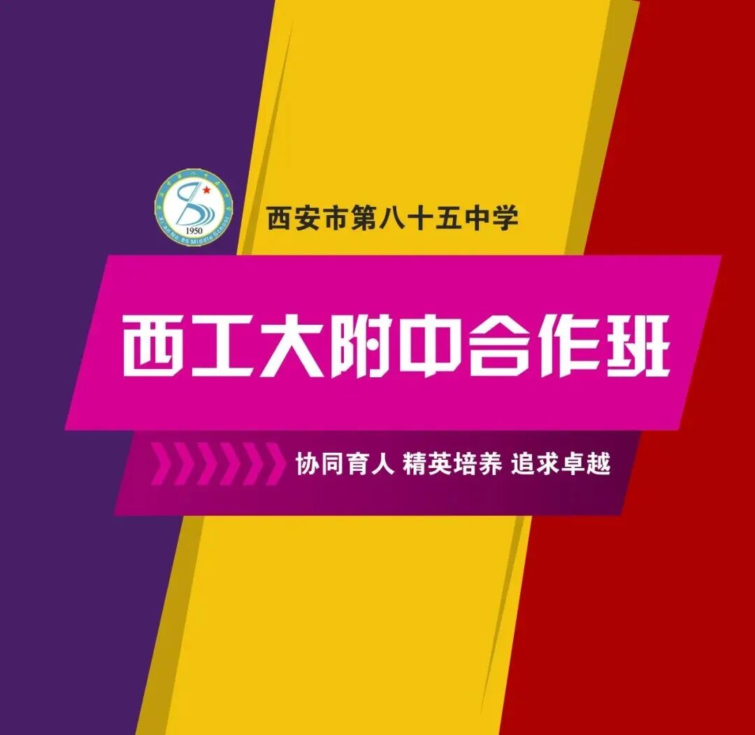 西工大附中合作班是西安市第八十五中学与西北工业大学附属中学(以下简称西工大附中)联合打造的品牌班级,按照“协同育人 精英培养 追求卓越”的思路,以“瞄准双一流,冲击顶级名校”为办班目标,精心选派西工大附中名师担任合作班任课老师,对合作班进行日常教学。