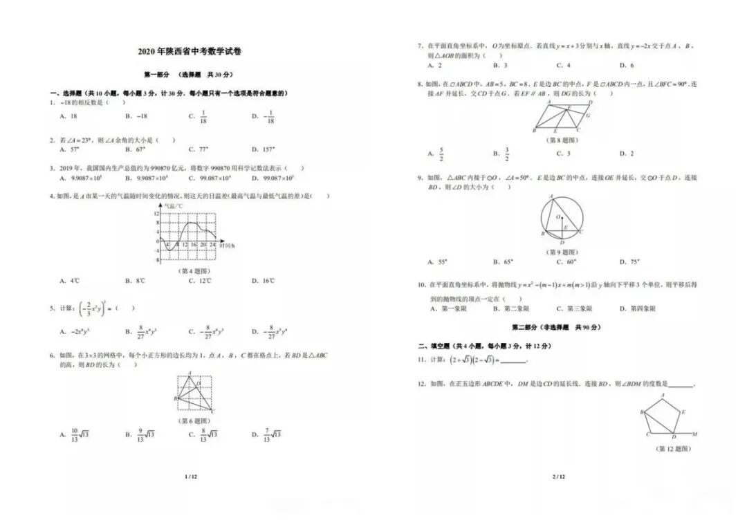 2020年陕西中考在7月17日拉开帷幕,当日下午14点至16点是数学科目,数学试卷坚持“立德树人、服务选才、引导教学”的核心立场,考查考生的基础知识、基本技能、基本思想和基本活动经验,引导师生对数学核心素养的关注与落实,试卷紧扣《教育部关于加强初中学业水平考试命题工作的意见》的要求,在继承中渐变,在稳定中创新,既保留传统的优势,保持明显的陕西风格,又有一定的新的特色。