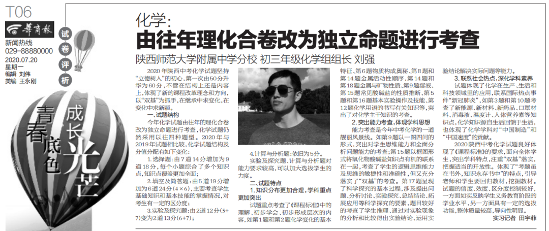 ▉ 刘强:由往年理化合卷改为独立命题进行考察